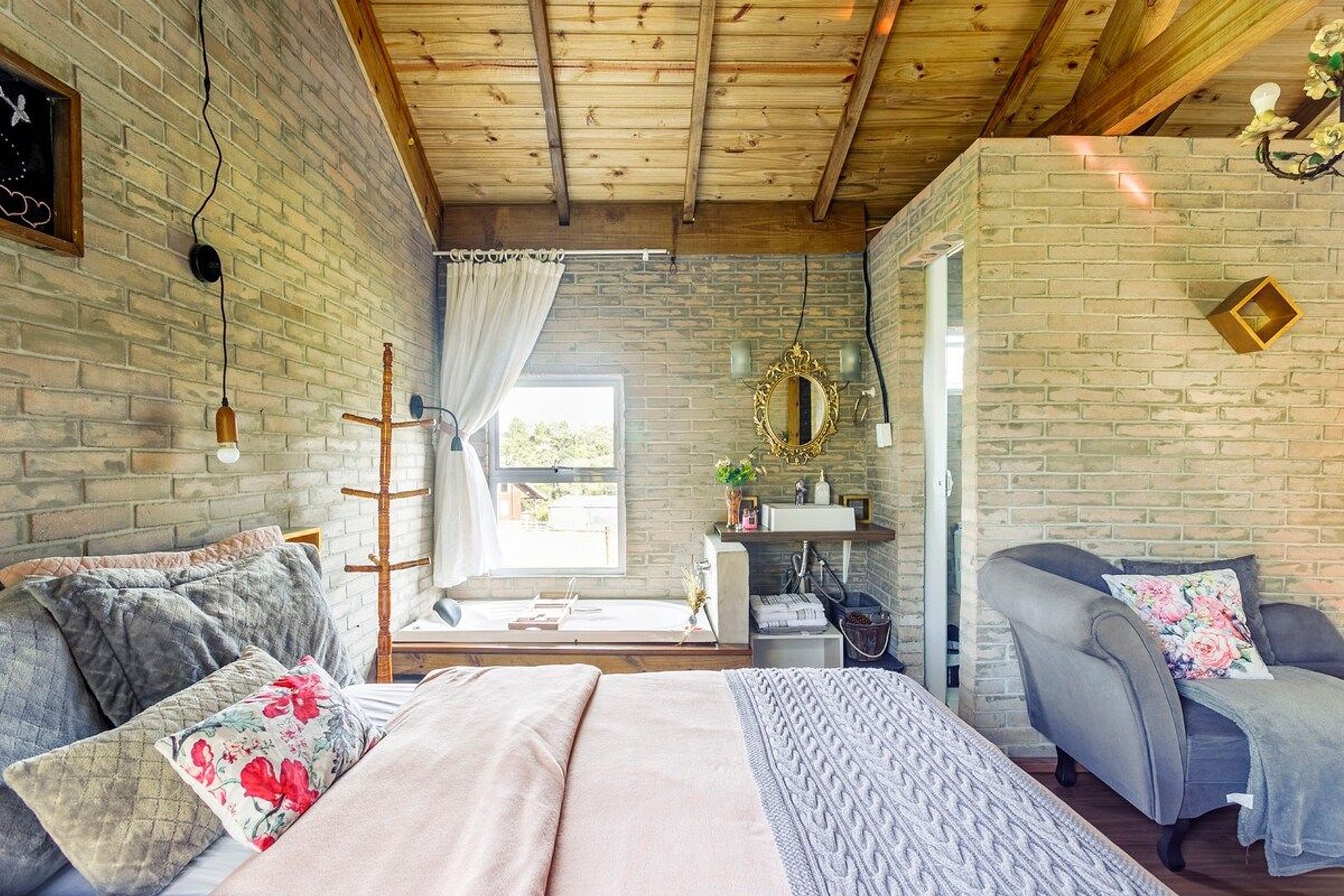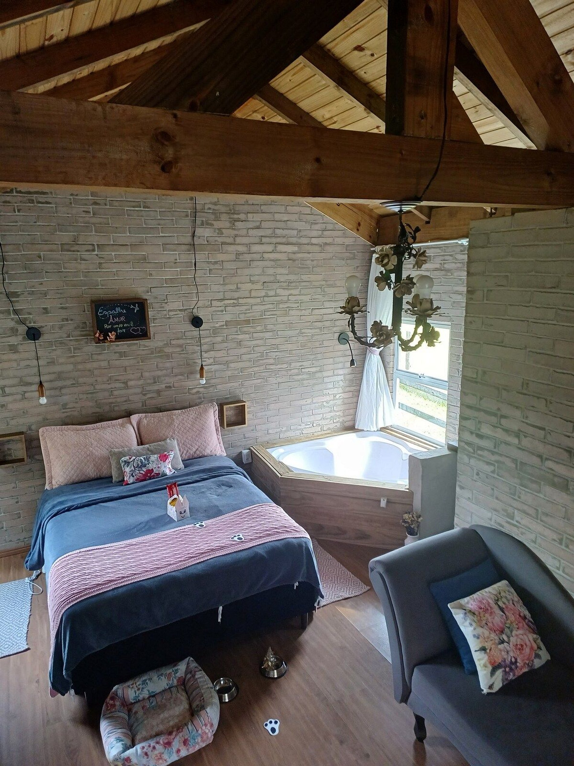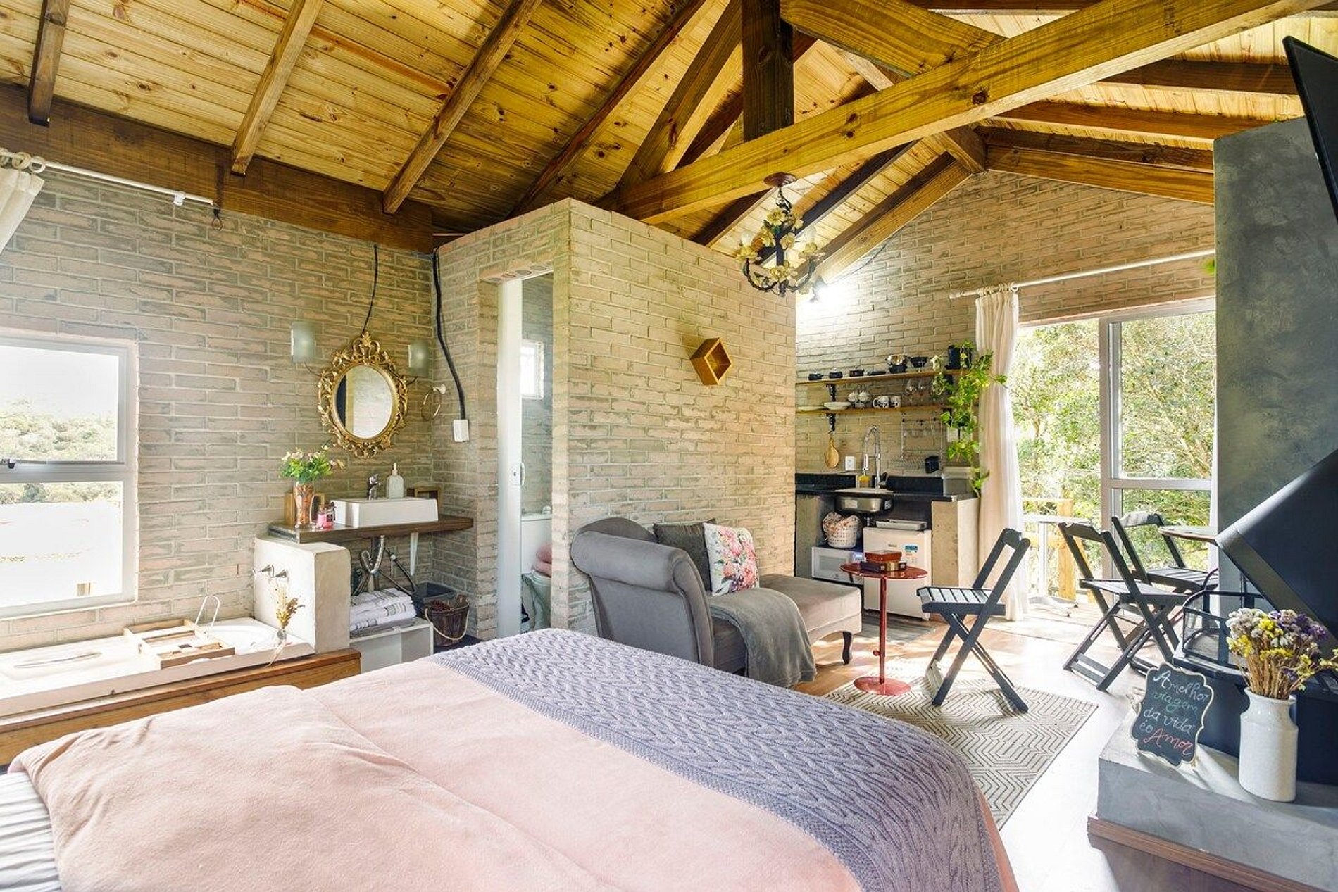 Internamente o chalé tem tudo que você precisa para viver bons momentos, incluindo lareira, churrasqueira e banheira com aquecimento, além de janelas pensadas para que você possa se maravilhar com um incrível por do Sol e um céu super estrelado.