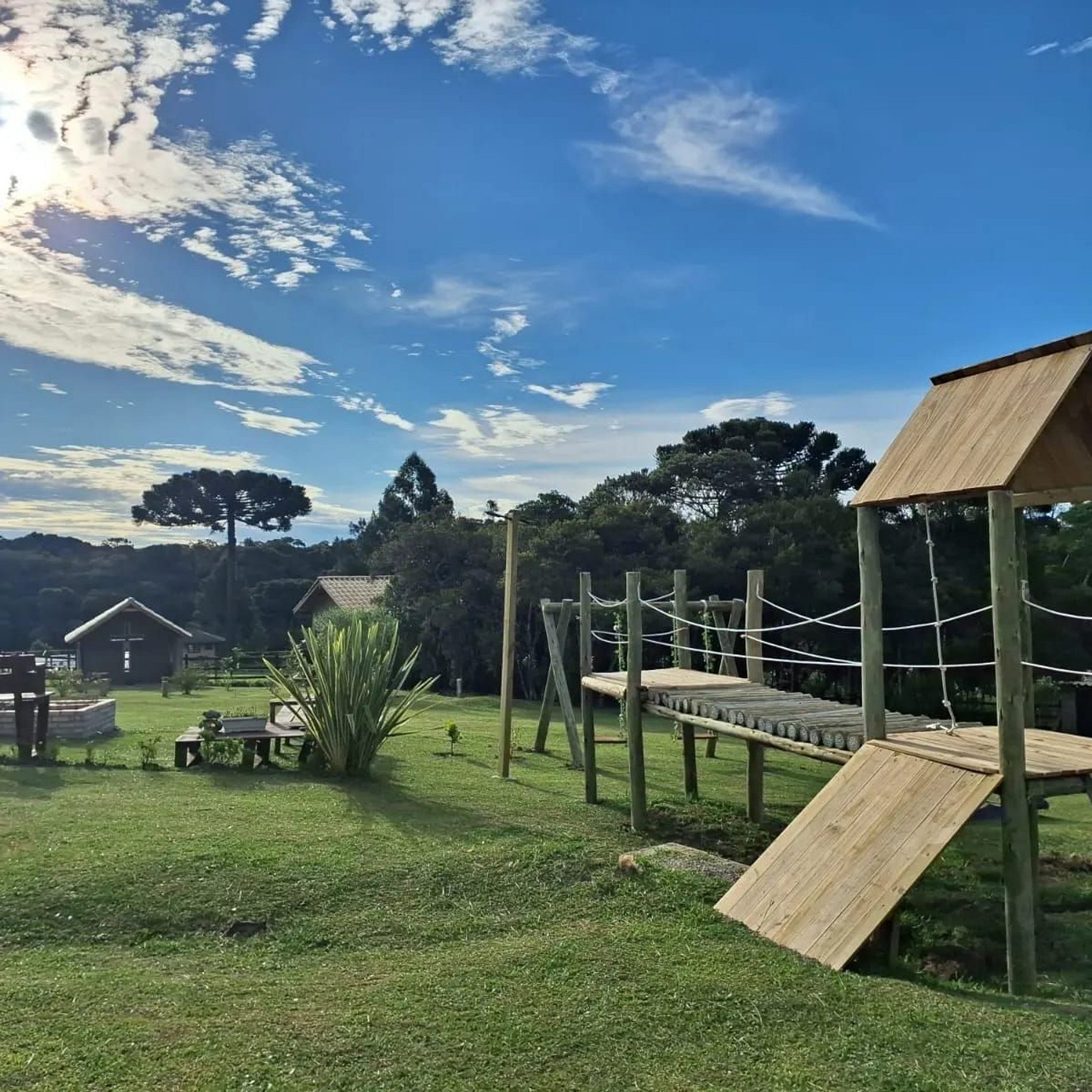 Temos na propriedade, parquinho para as crianças, capela para pequenos casamentos, horta, pomar e coelhos.